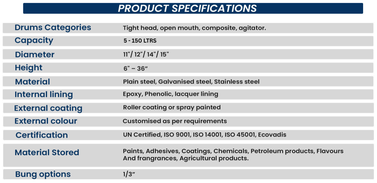 Compact Steel Drums for Versatile Industrial Use